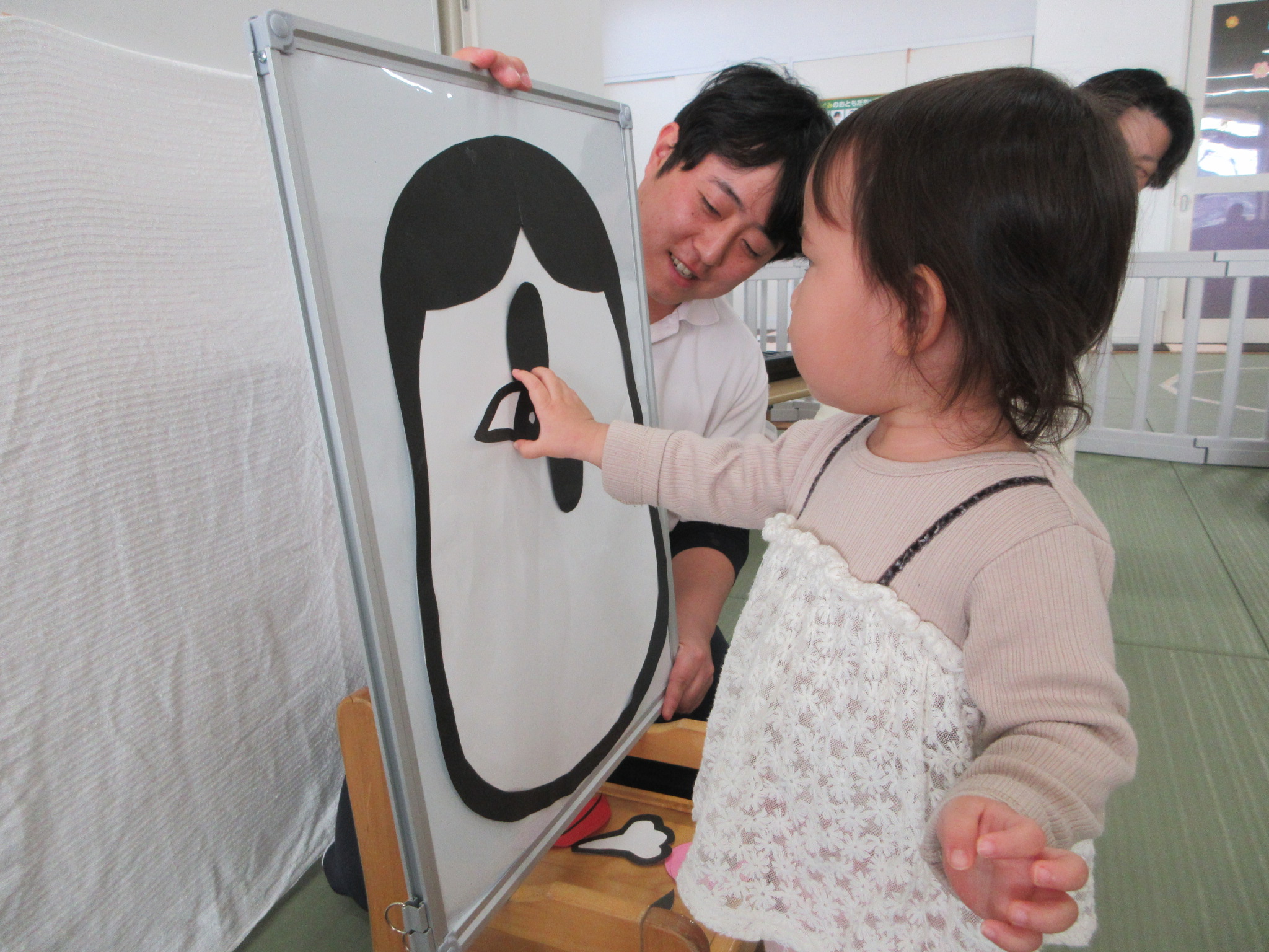 「これは目かな?」「口はここじゃない?」と、