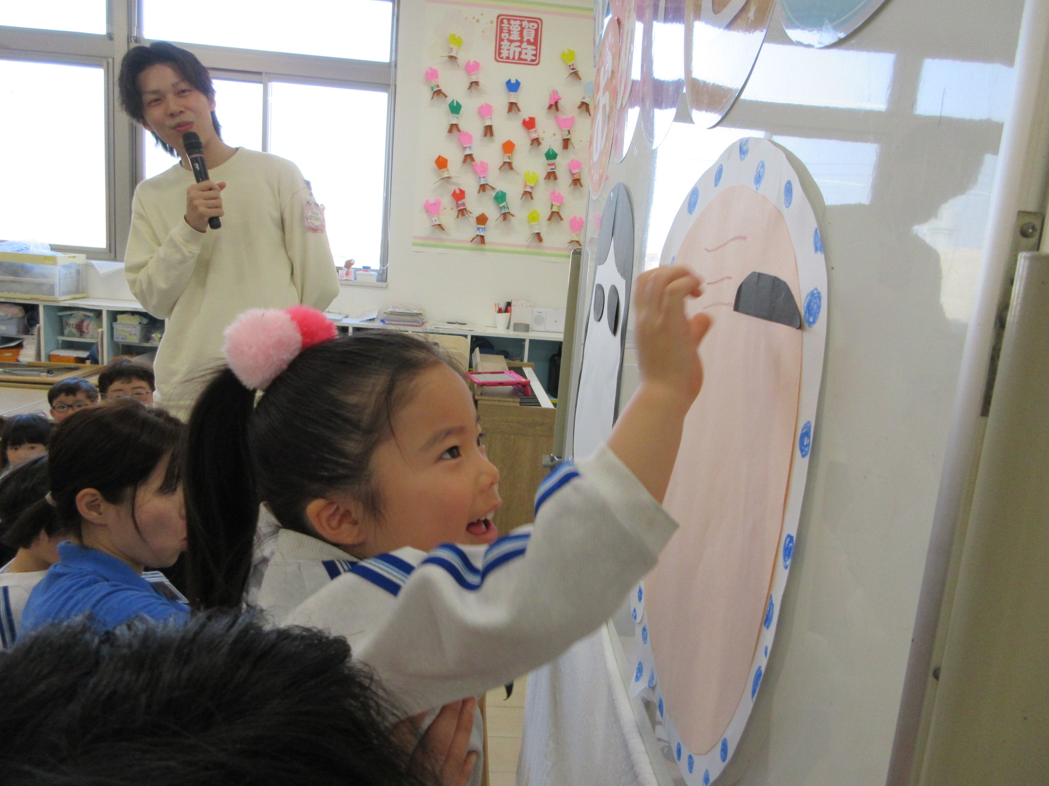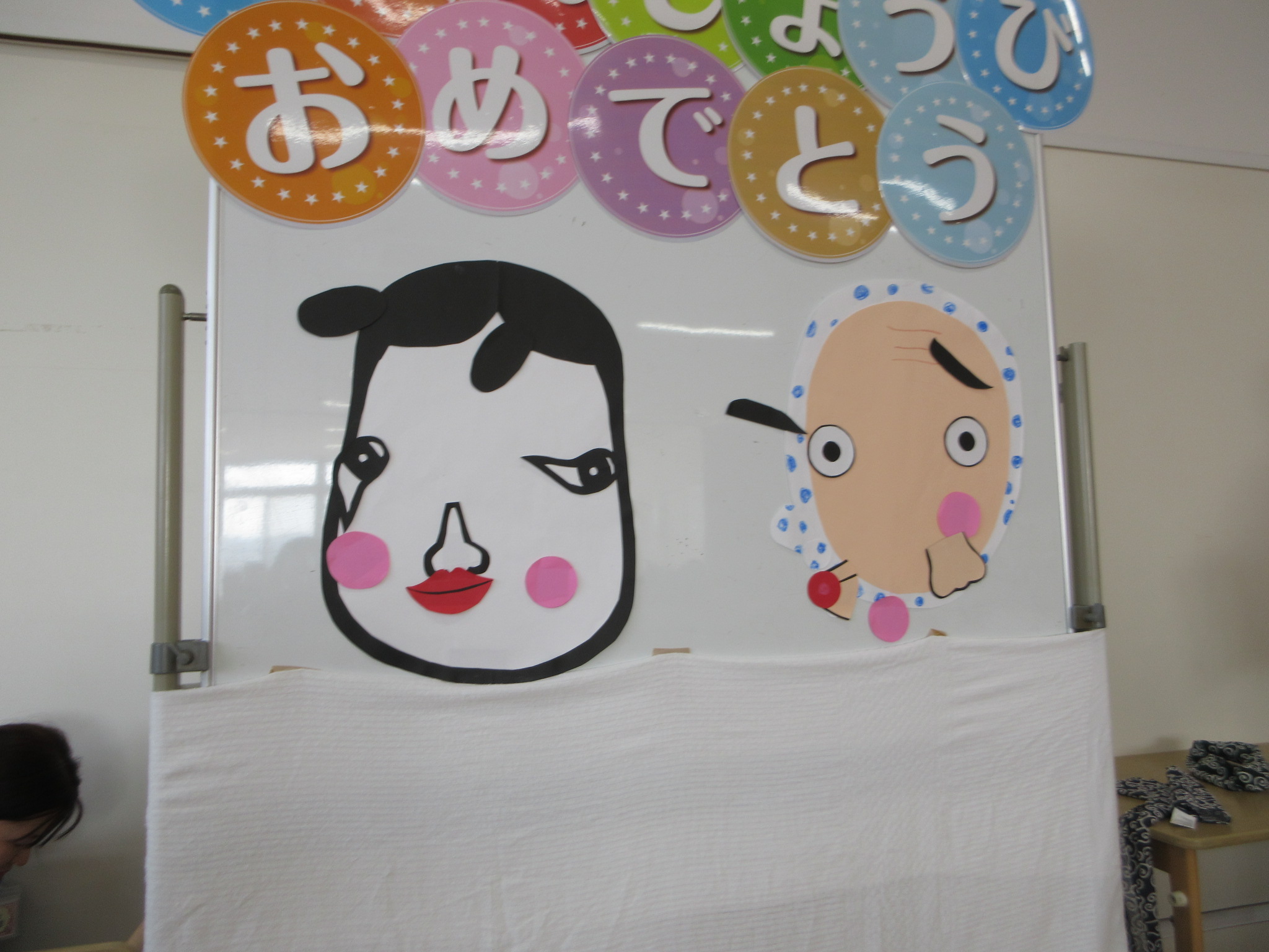 1月のお誕生会では、お正月らしさを取り入れた二人羽織に挑戦!!