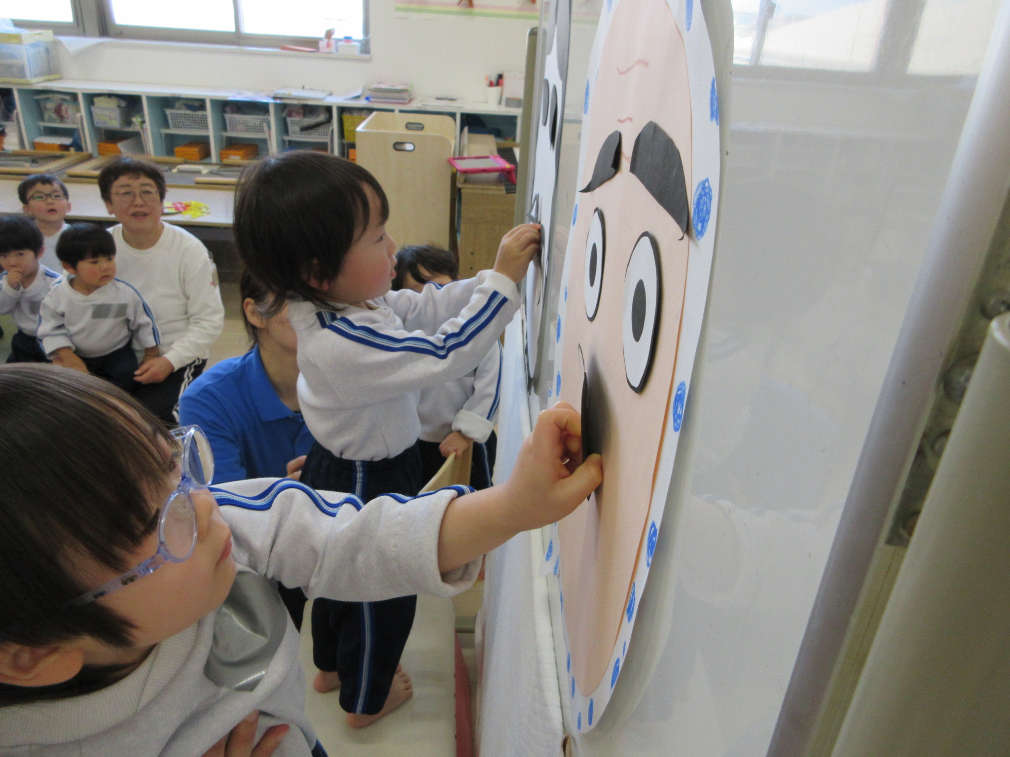 近くのお友だちと顔を見比べながら、