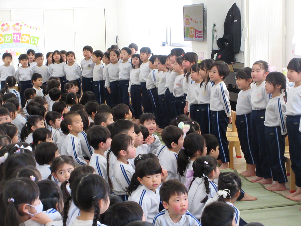 先日、まなびや園では全園児でお別れ会を行いました。